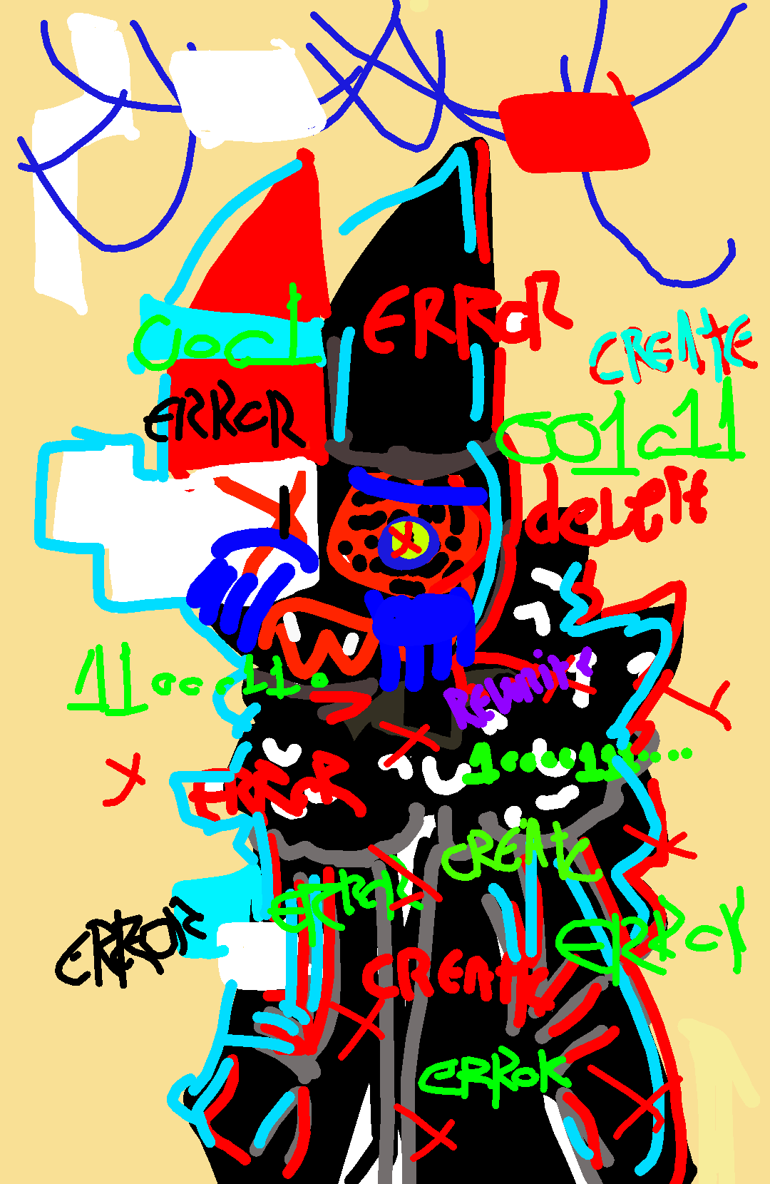 This oc can error and glitch everything Cand delete and create everything and rewhrite can see universes of everyone