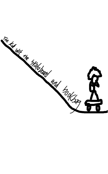 The kid wit the skateboard and bookbag