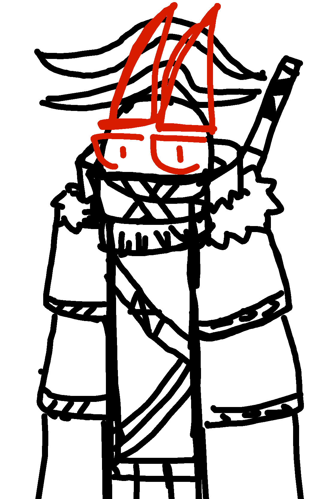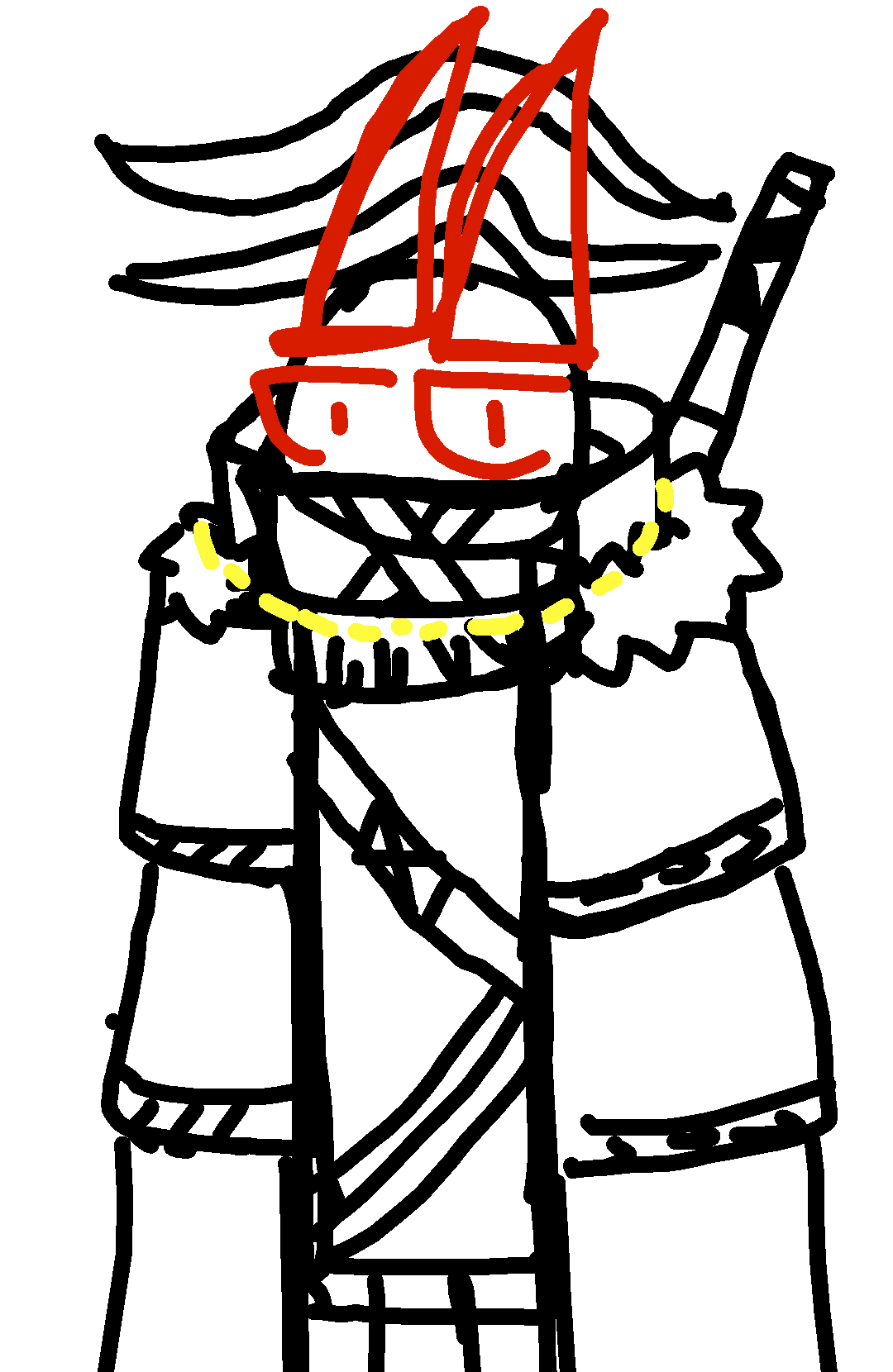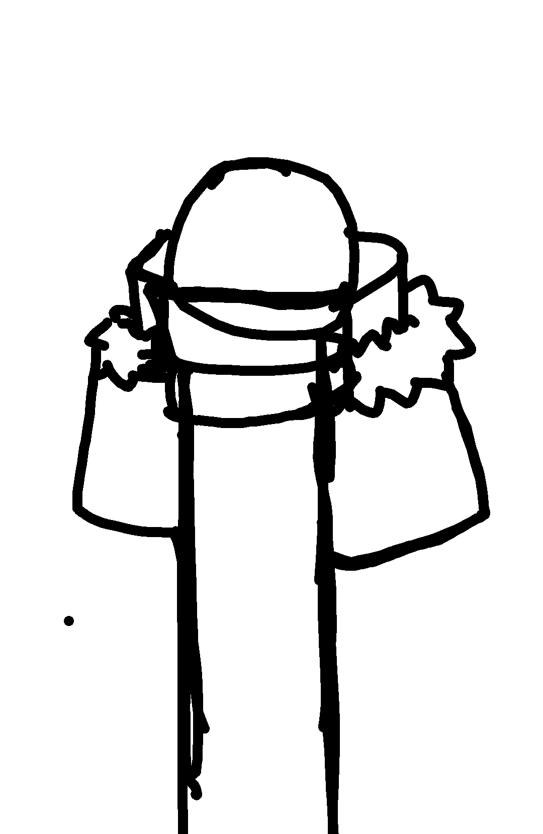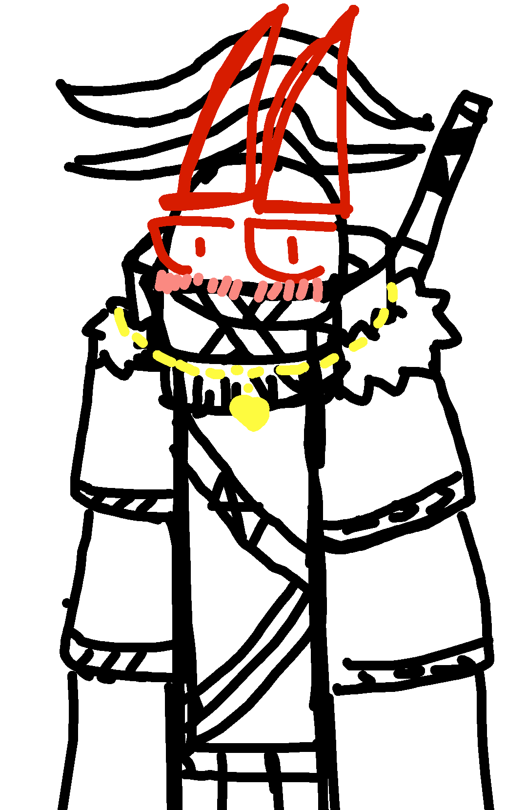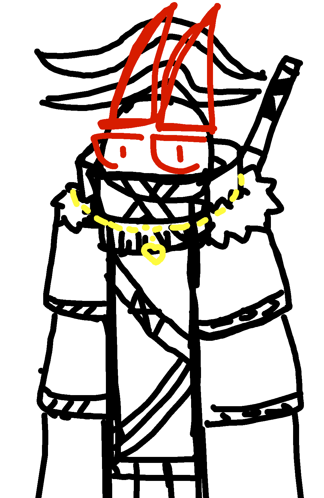 8draw,a wheird bow and let it connect with the line do the same but a lil bit smaller do the same on the right side