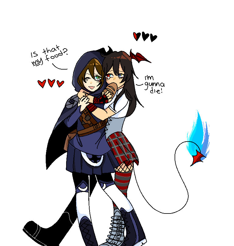 I couldn't come up with any ideas so here's me being a rat and taking food from death angelo :3 I'm gonna redraw this once my phone is fixed though 0-0