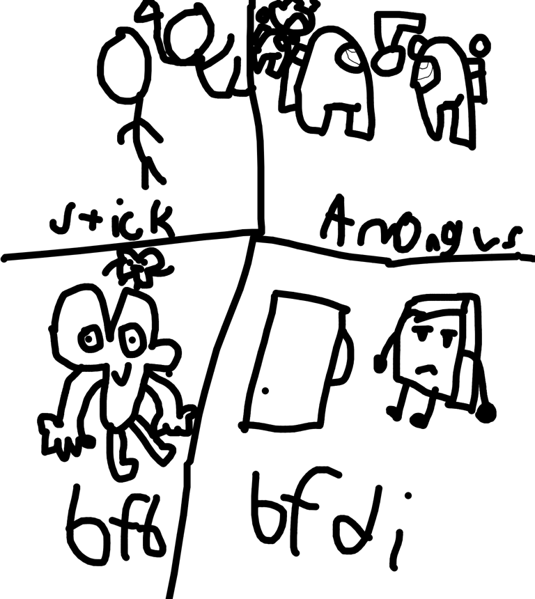 stick ,among us , bfb , bfdi , tpot , or under tail