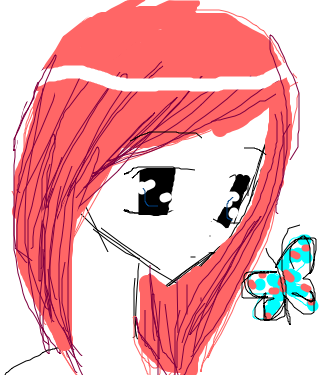 An anime girl I drew looking at a butterfly passing by her in the Spring Time.