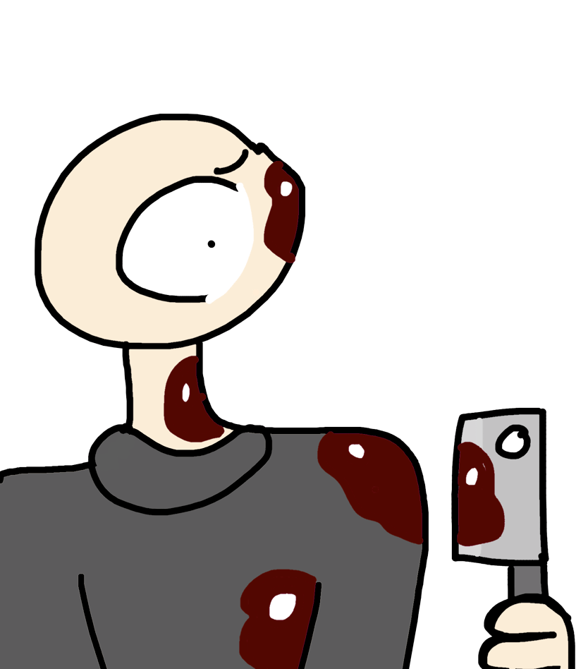 You see someone holding a bloody knife and covers in the crimson liquid looking scared out of their mind not k ow why the hell they did that do you