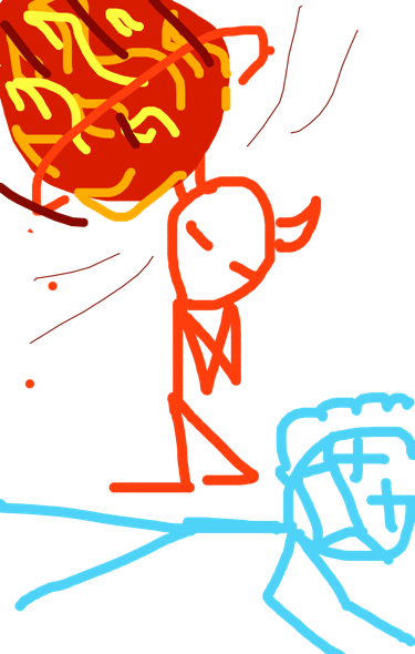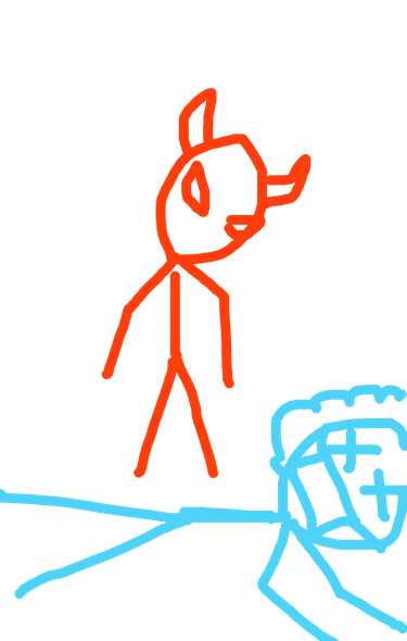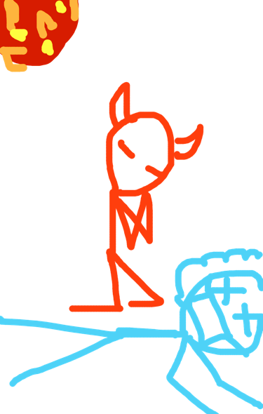 He finds a mask, thinks he’s found safety. Unfortunately, his already compromised immune system was heavily affected by the large amounts of carbon dioxide he was inhaling. Ironically, he dies trying to escape death. A devil walks by, prays for death, destruction is delivered.