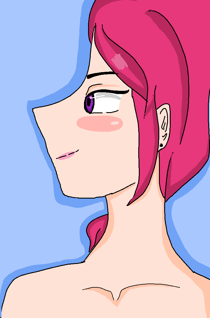 The eyes violet and hair pink