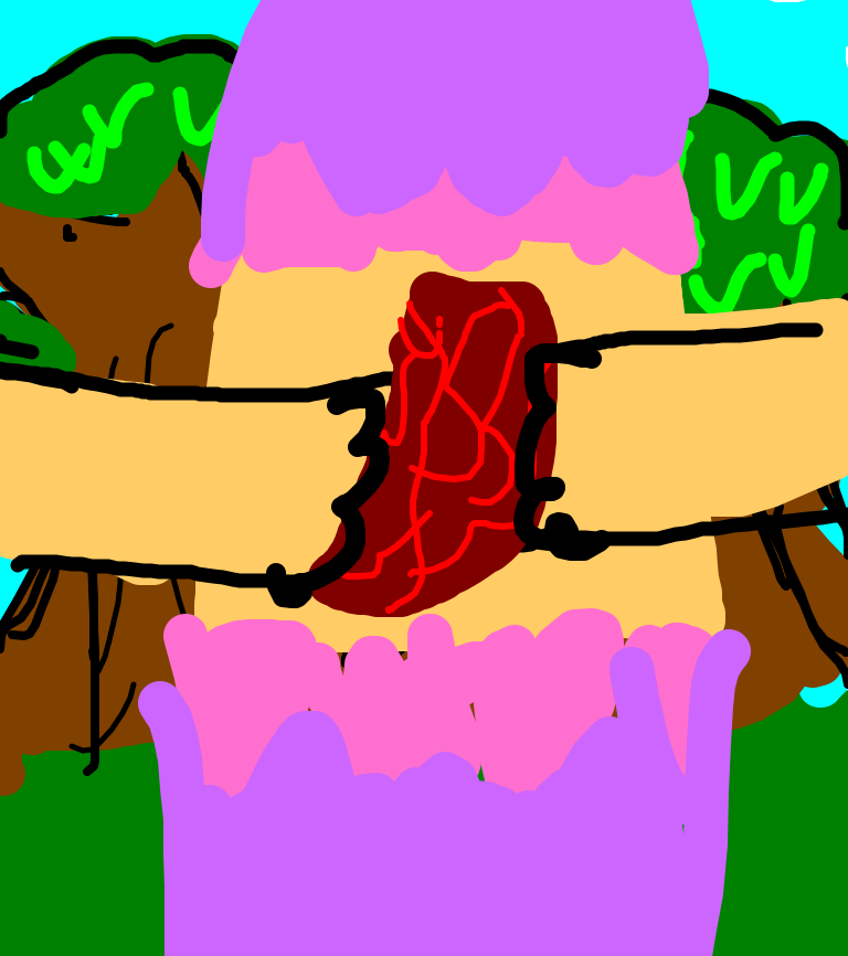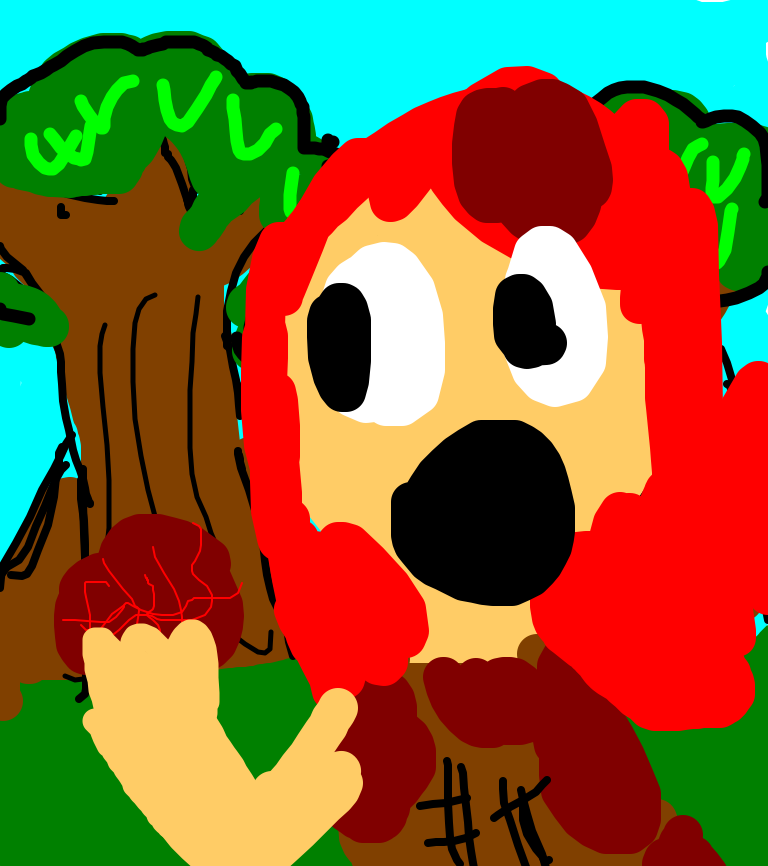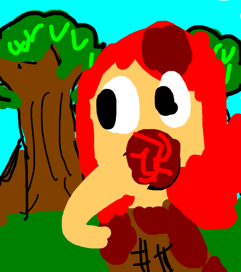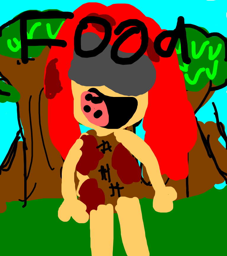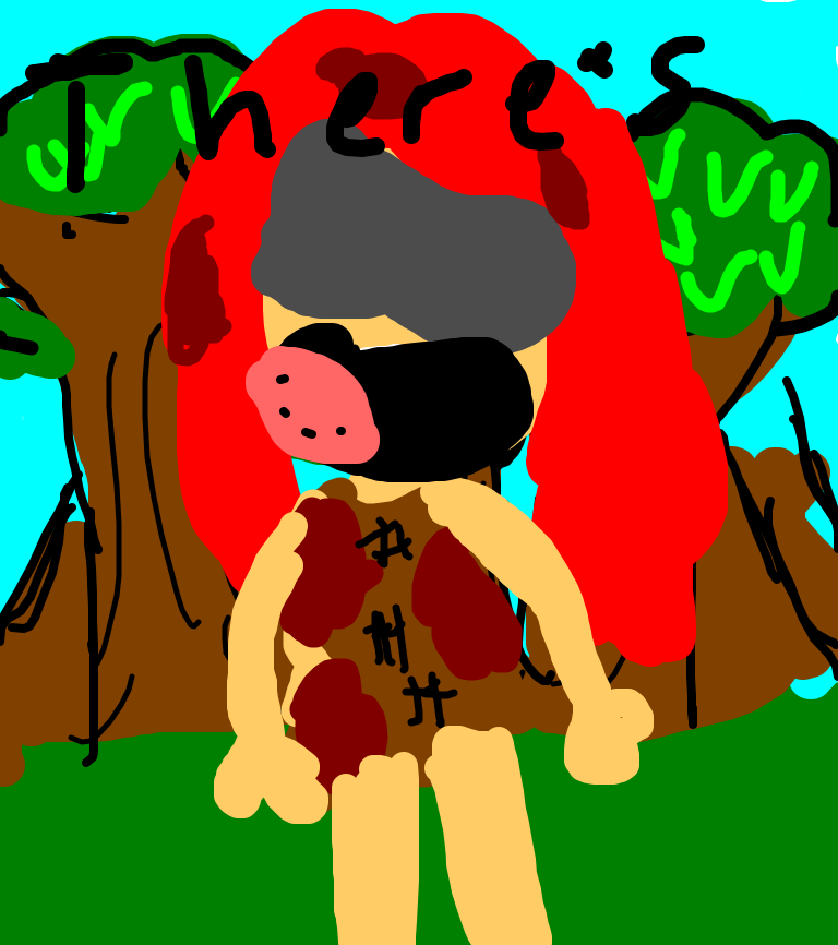 a red headed girl became crazy after being in the forest so long so she stabs her freind eats his guts and some how make it rain anamail blood