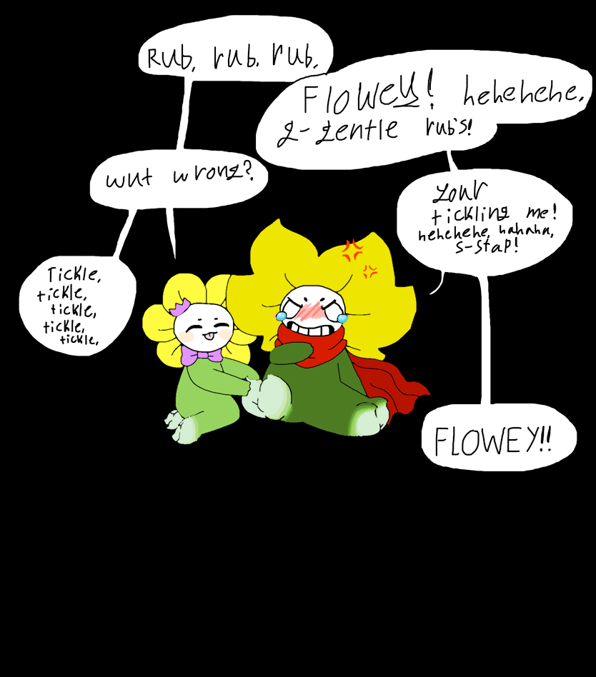 Flowey: hahaha heheheheheh ^D^ Thorn: Heheheheheheheh hahahahhahahahaha >D< s- stop! I- I- I’m- ticklish there!! HAHAHAHAHAHAHAHAHAHA!!! Flowey: ^v^ heheheheheh