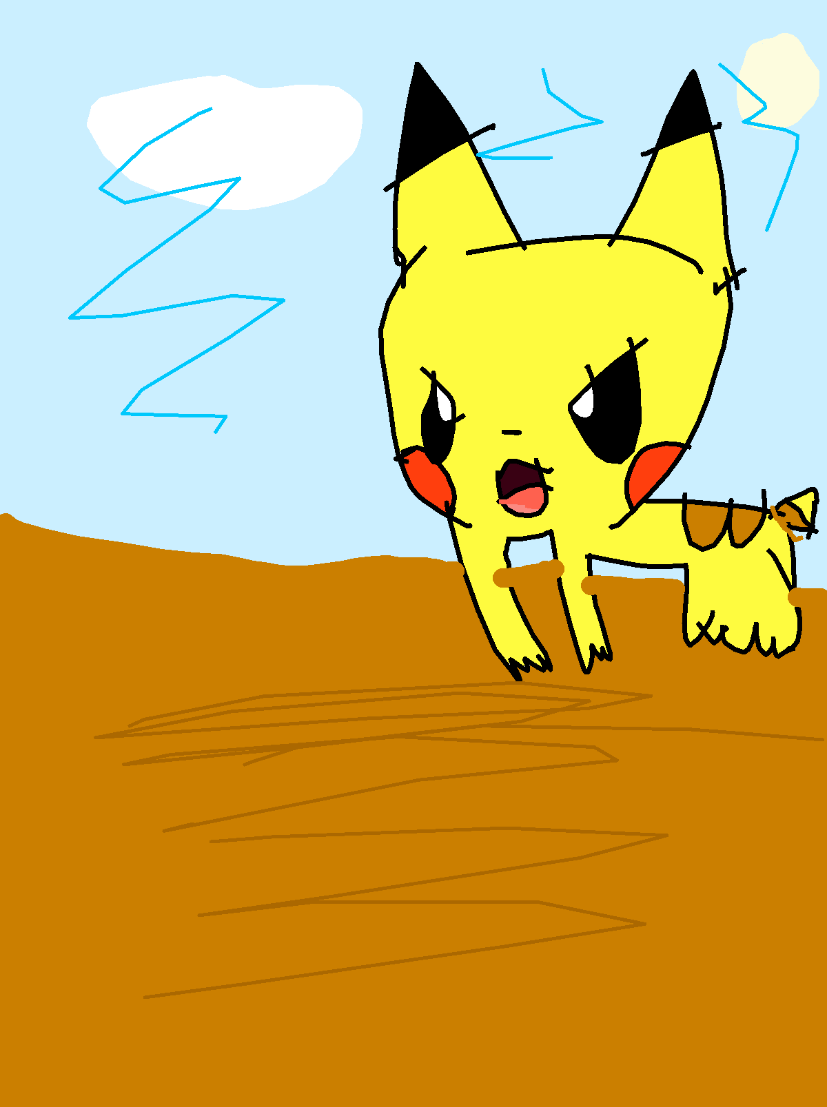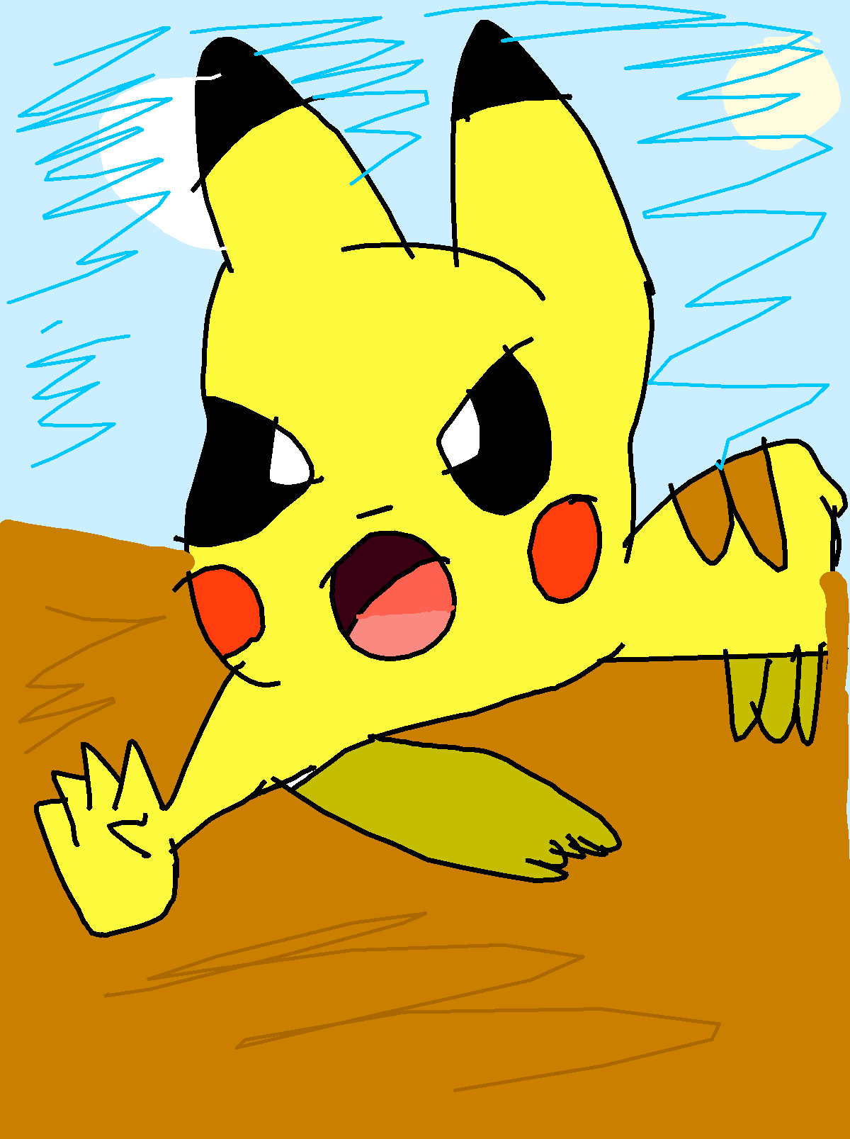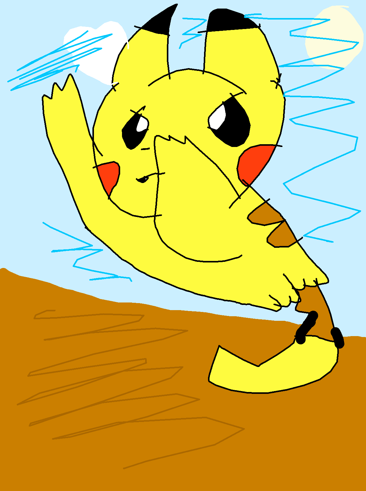 An angry running pikachu
