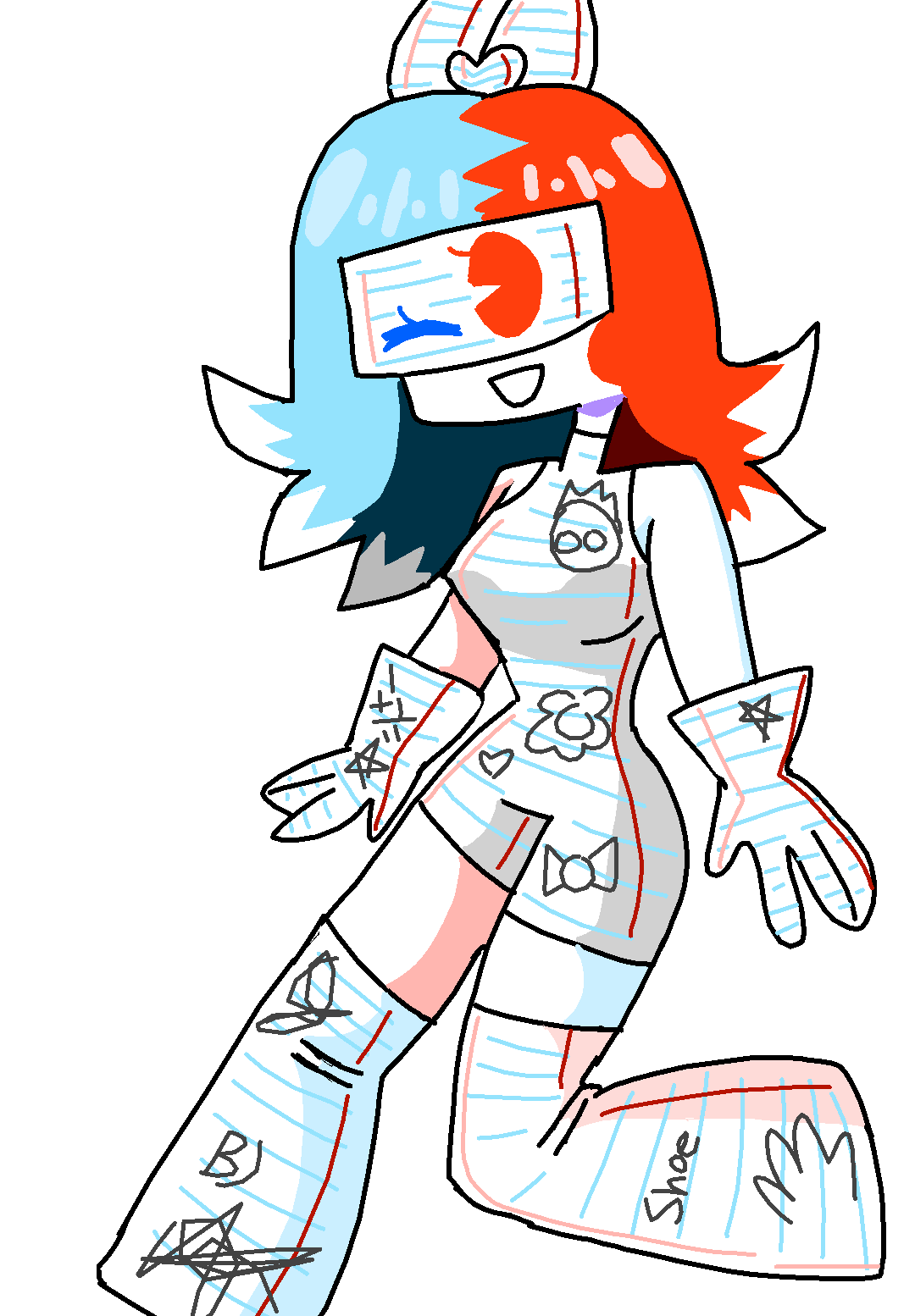 Her clothes are basically paper with anything on it, doodles, words, or even math equations