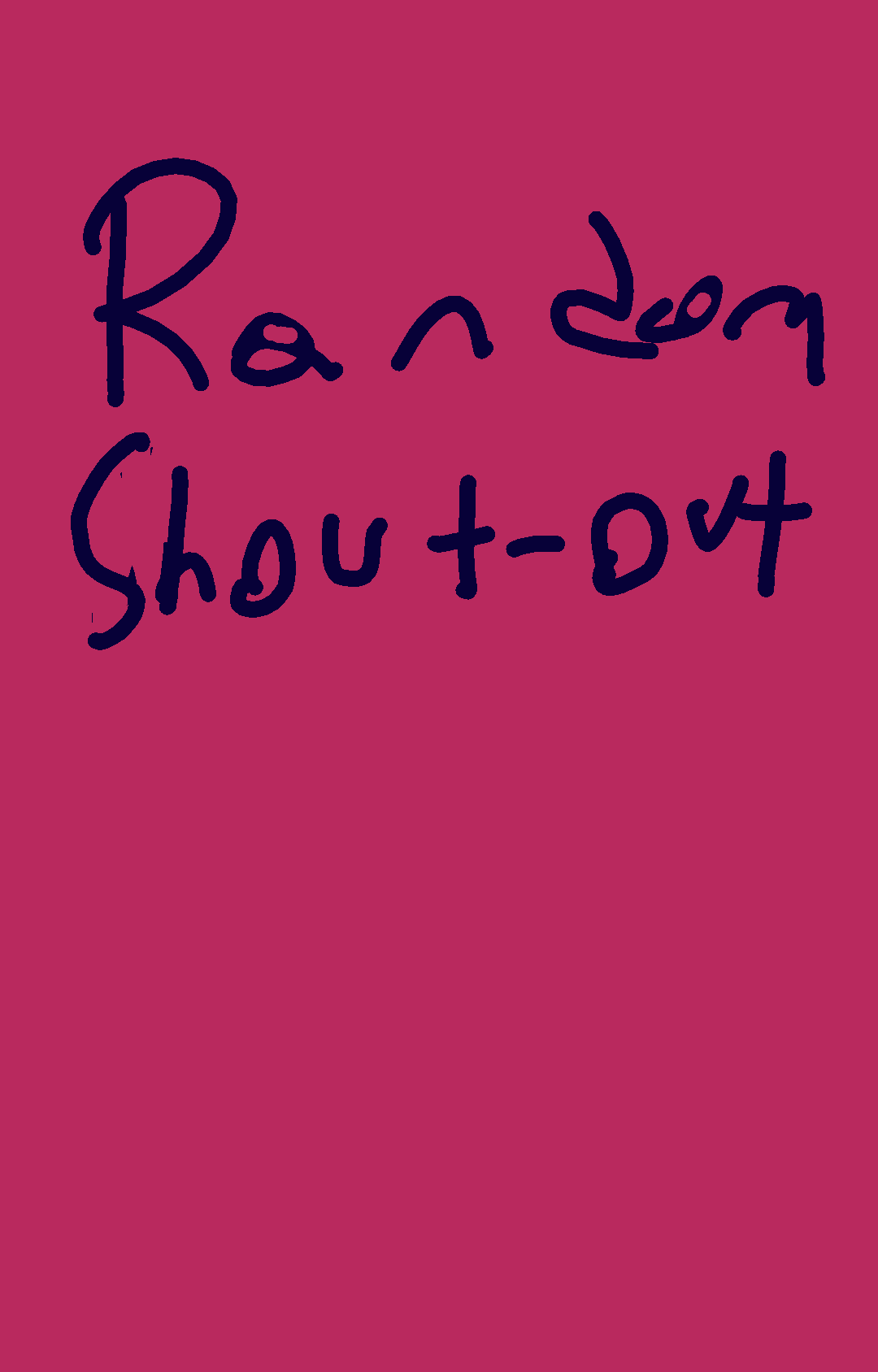 The Shout-Out goes to: ο½₯ οΎπππ‘ππ«π«π²ππ¨π₯ππ οΎο½₯ Congratulations. (FYI I will do a contest here soon)