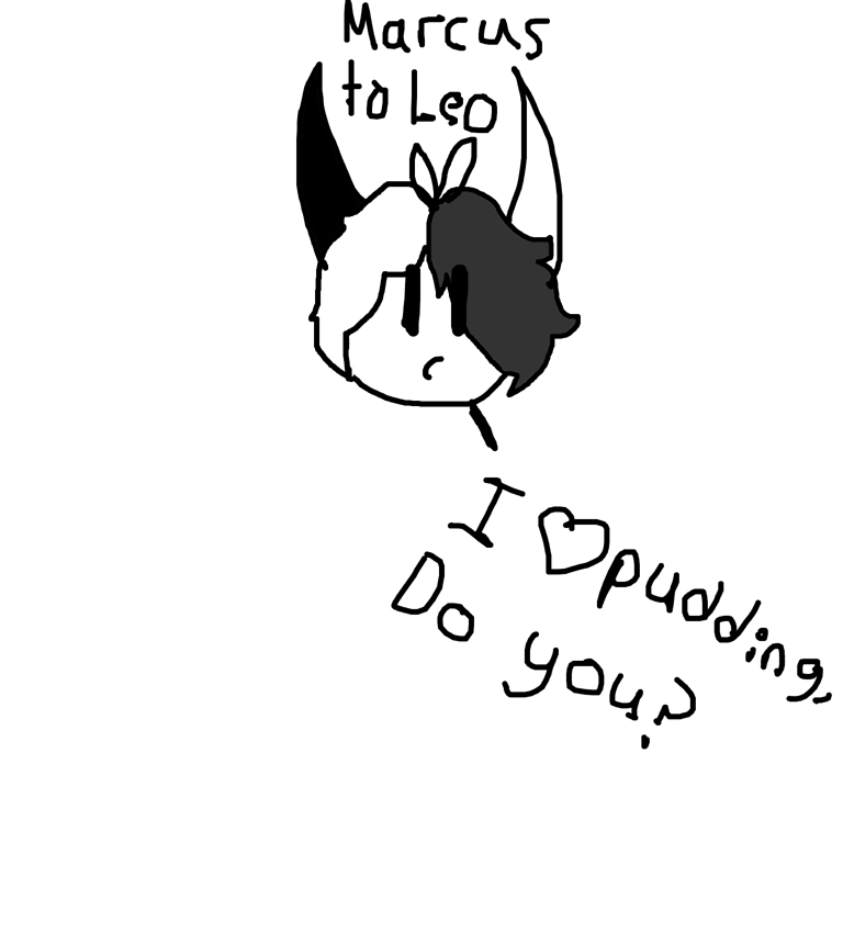 Marcus: I ❤️ pudding, do you? Leo: I LUV PUDDING Marcus: Oki! I’ll get some! Leo: PUDDING PUDDING PUDDING! Marcus: wow…