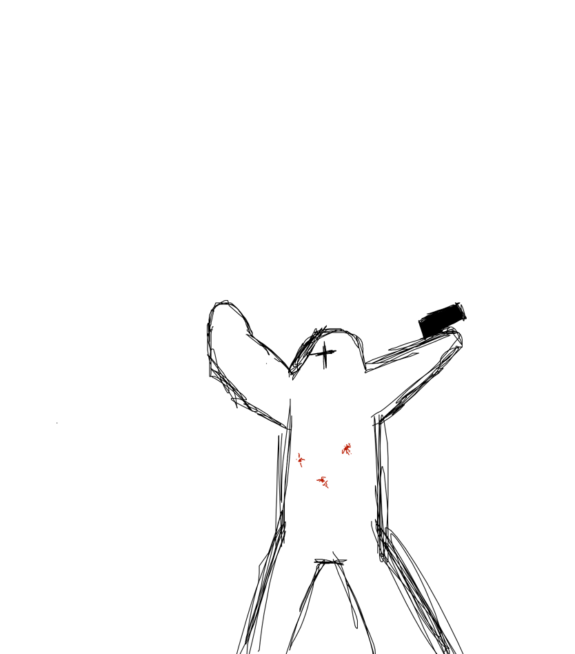 The scientist sees the riot. The riot shot at the scientist and UNKNOWN guy dives at the scientist to help him but the shot still landed…