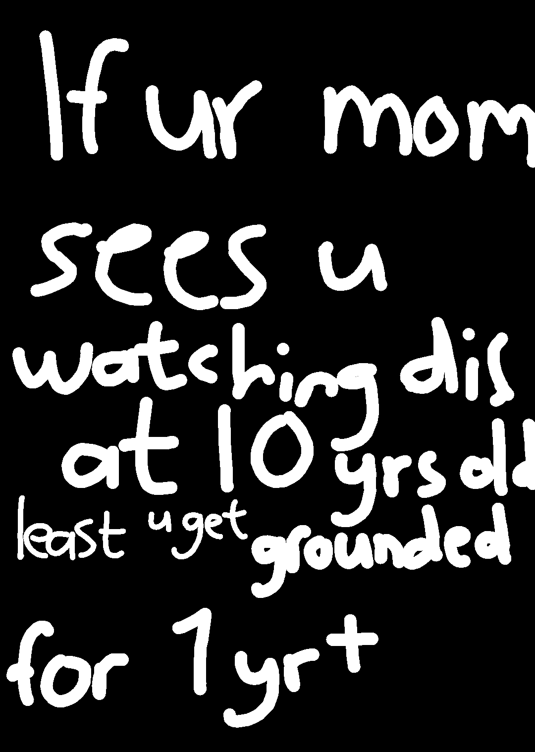 If ur mom s es u watching this ur gonna get grounded so leave now if ur 10- is your age