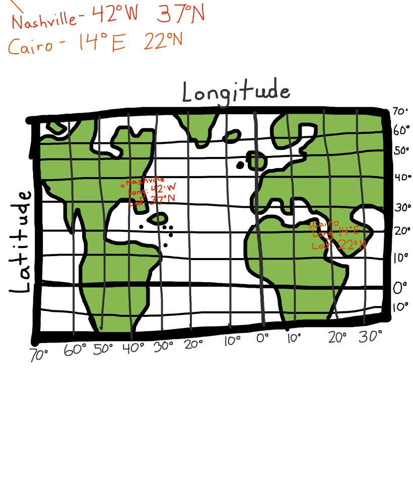 A very inaccurate map of latitude and longitude.