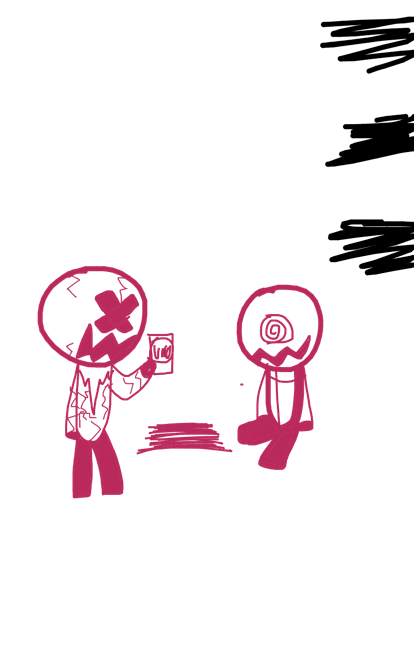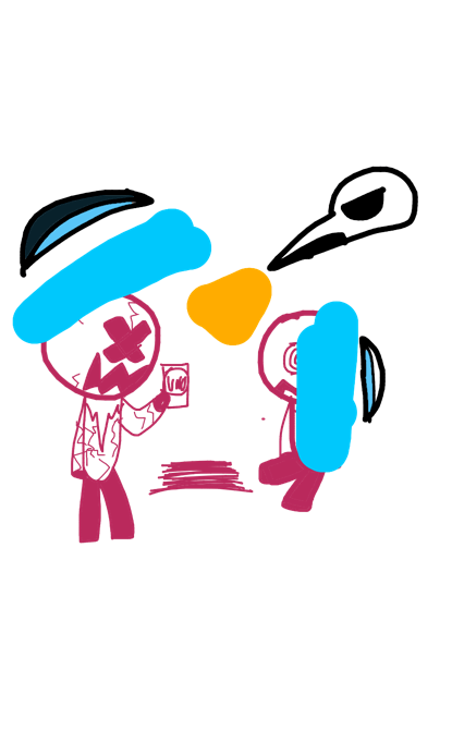 corrupted people have pinkish purple outlines and inside they are fully black.
