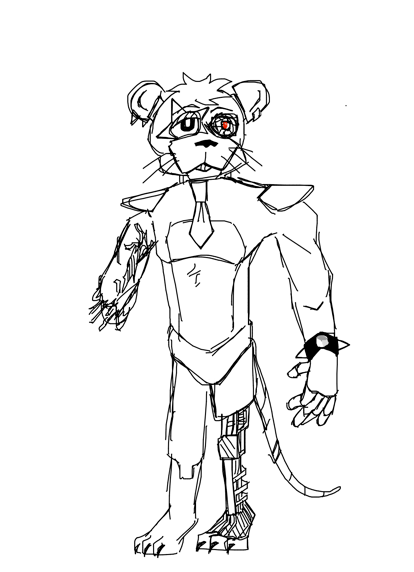 This is my fnaf oc scrap rock hes an oc who wanted to be a glamrock so he took scrap parts to look like one