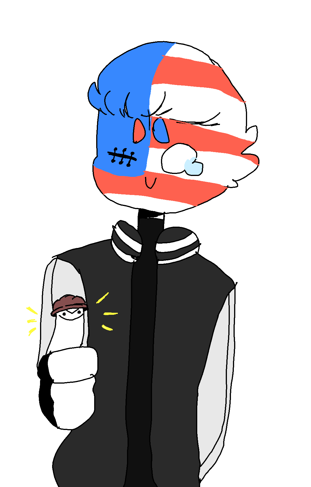 I was in the forest and I found a nut shell so I went home with the shell, I drew a face on my thumb and put the nut shell on it