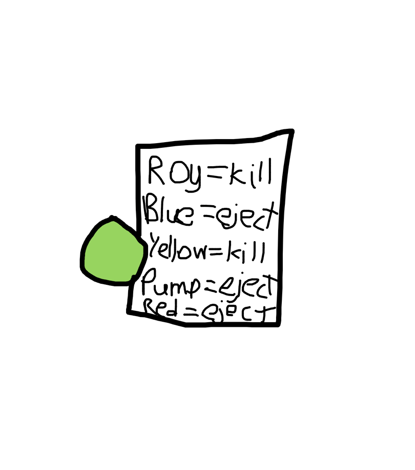 Roy = kill. | Blue = eject. | Yellow = kill. | Pump = eject. | Red = eject. | ———————