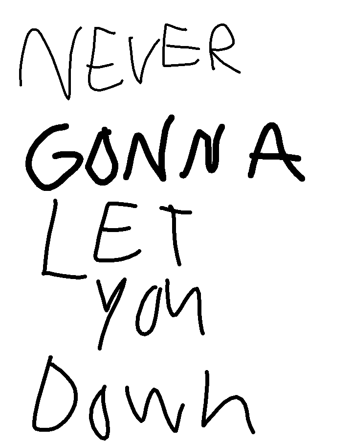 NEVER GANNA F(BEEP) YOU UP NECER GANNA KILL YOUR SON(KILLES YOUR FUTURE SON) Or stuff you fore dinner!