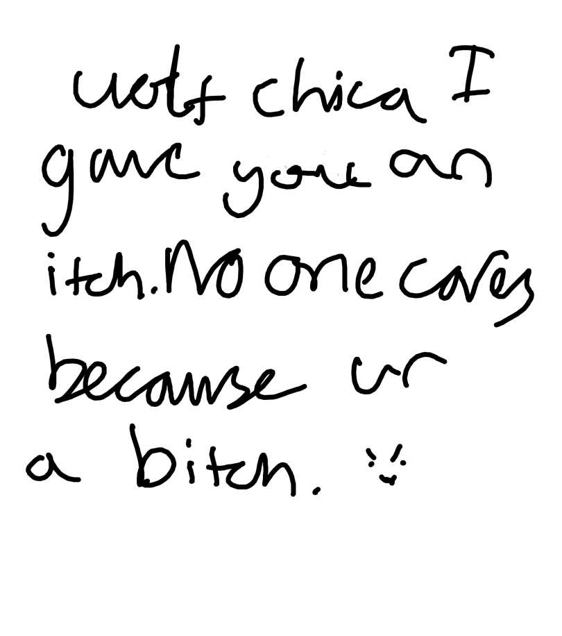 Wolf chica! I gave you an itch! No one cares because you’re a bitch •^•