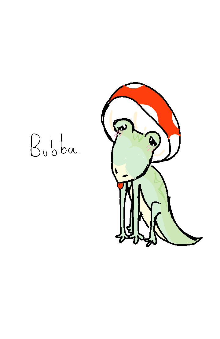 Well this my new animal creature thing. Name Bubba he goes by he/him. And he's the leaders of the frog clanπΈ