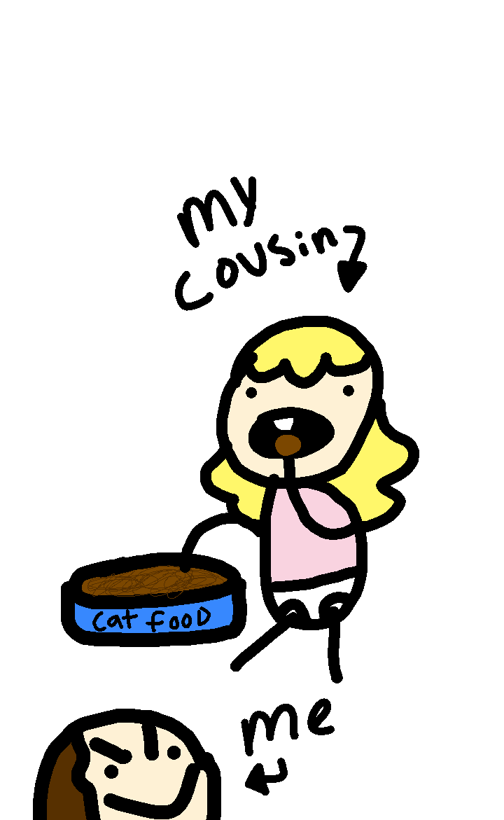 my dumb cousin eating cat food lol