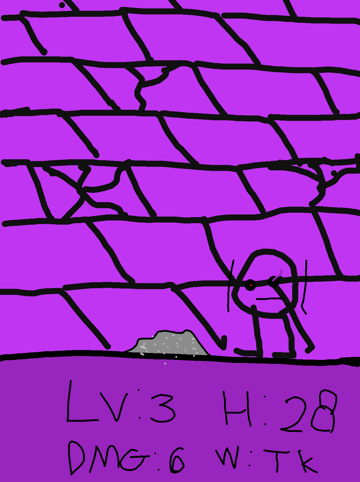 Snas decided to go to the ruins, He grabbed the toy knife, and started killing, What now? Lv: 3 HP: 28 ATK: 6 :Weapon: Toy Knife