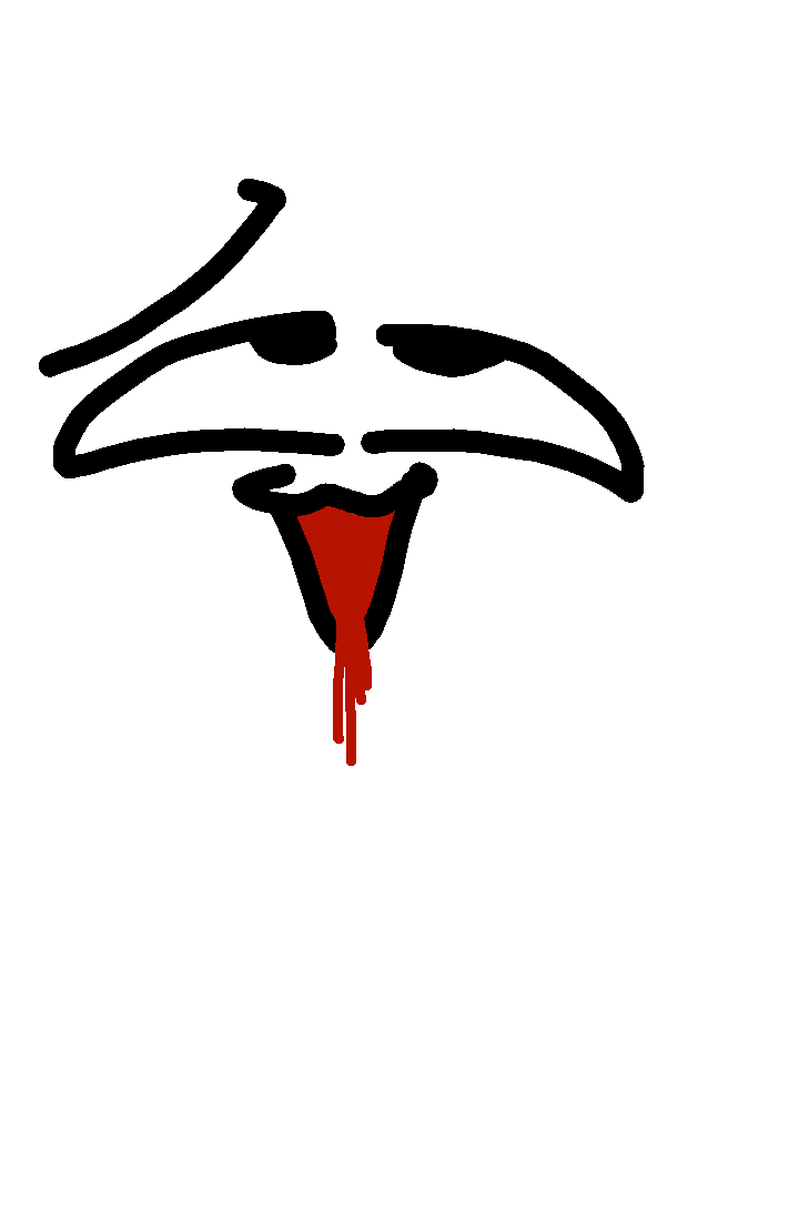 His mouth bleeds.