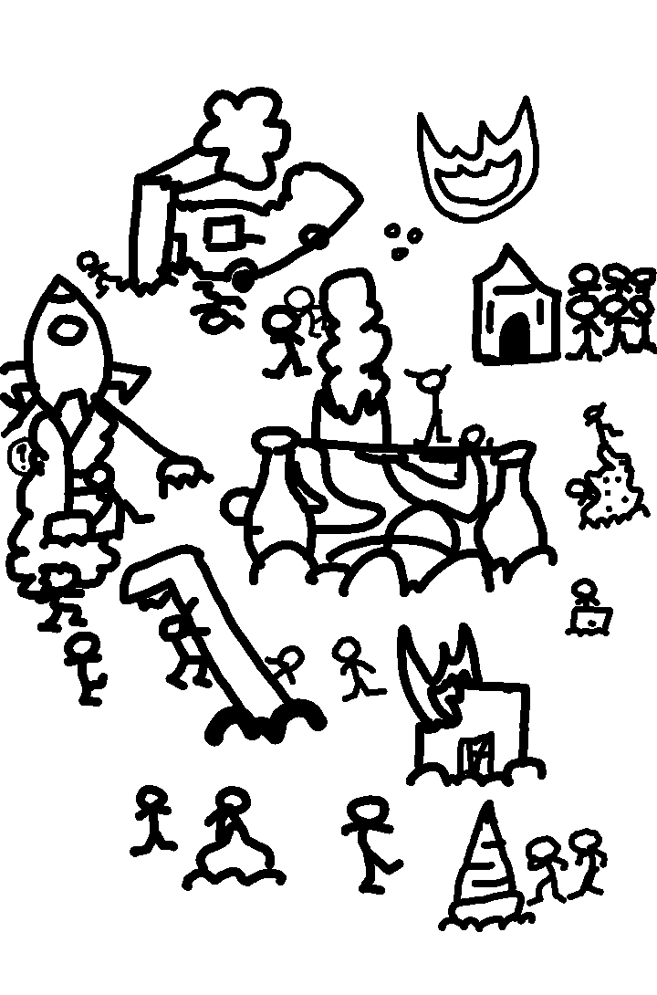 Behind the rocket ship
