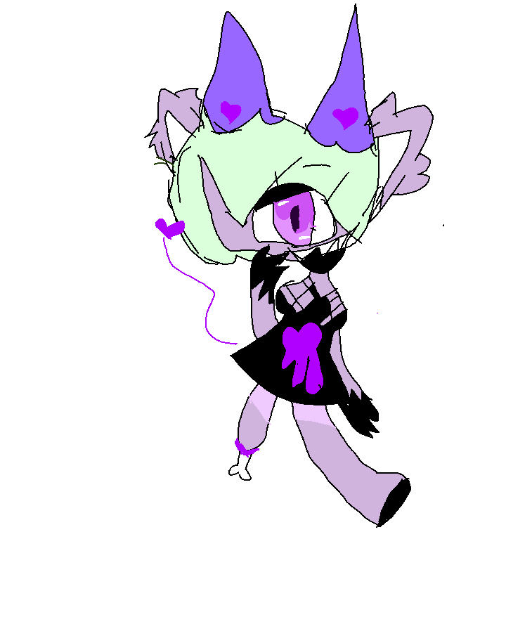 shes a cat demon! She was stabbed in the heart and her leg was cut off! Shes best friends with Angel dust and Cherri bomb,!!