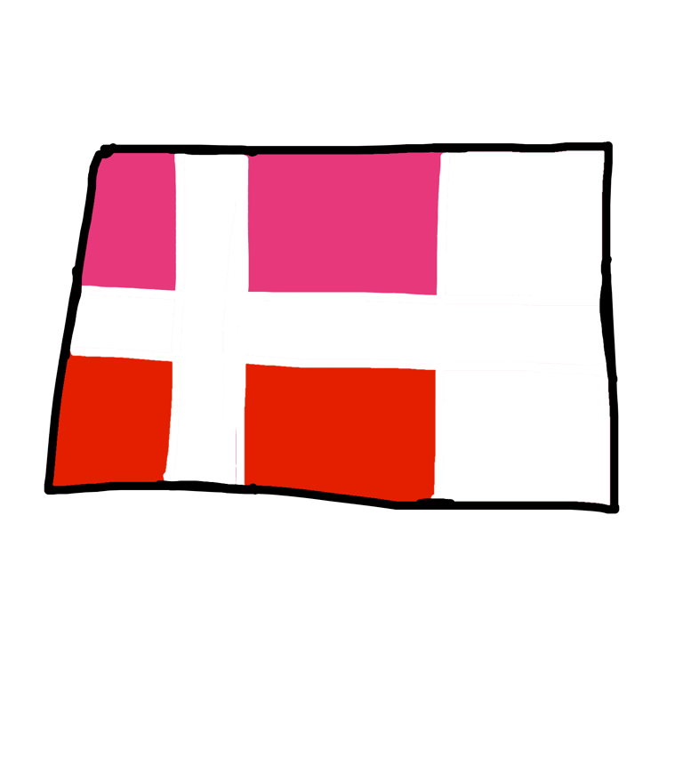 Pink - Sky (sunset) Nordic Cross - Clouds and Flag Pole White - Peace Red - Roses 🌹 White Stripe - Peace Between the Country and Allies