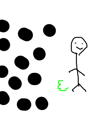 Ok so theres the dumb guy the one who ate the blueberries and he got a name-Dumb Guy-he farts. These big dots like run away but he keeps farting and ok just watch it...