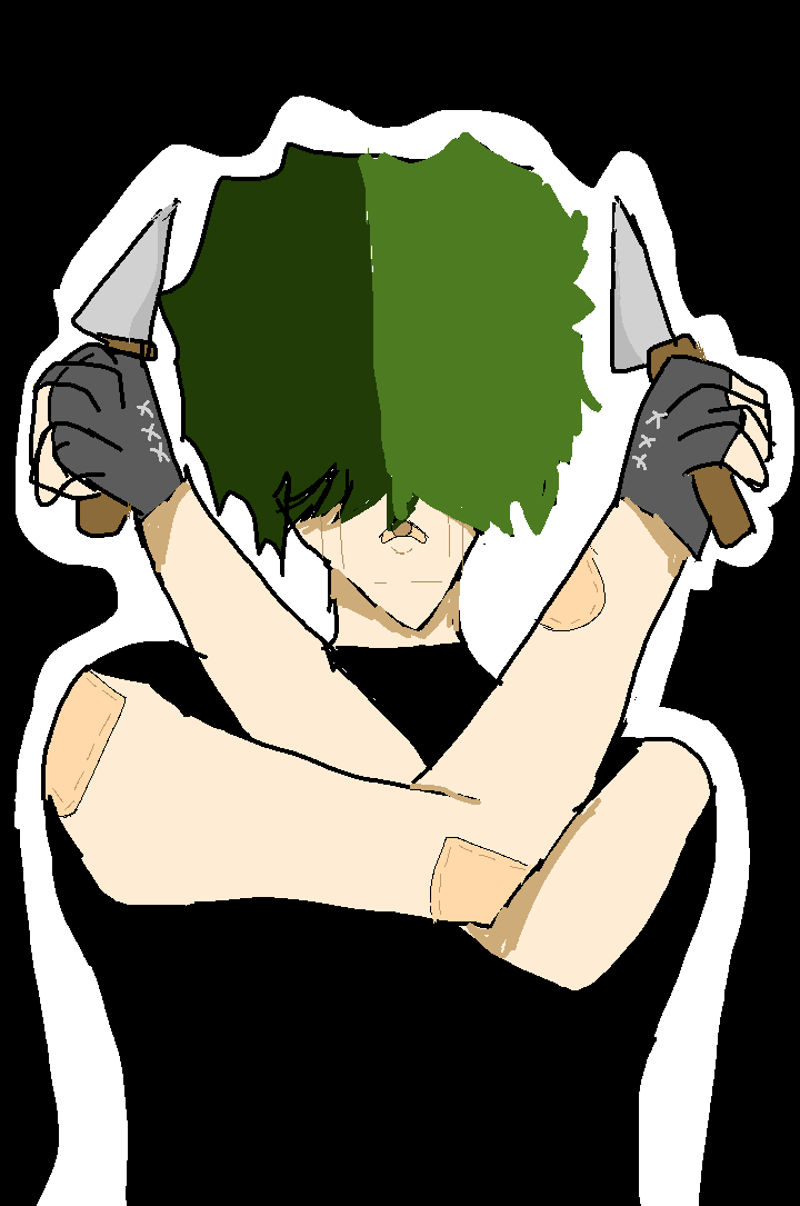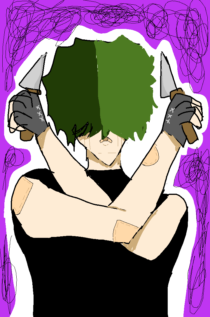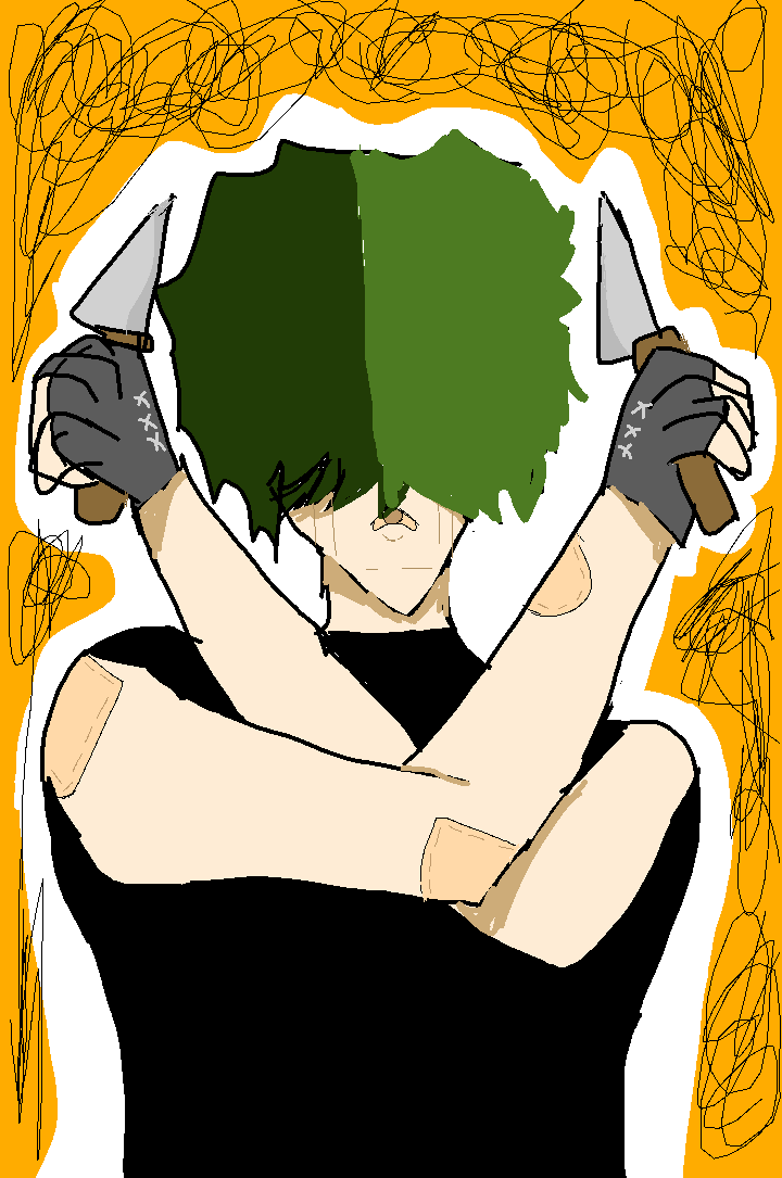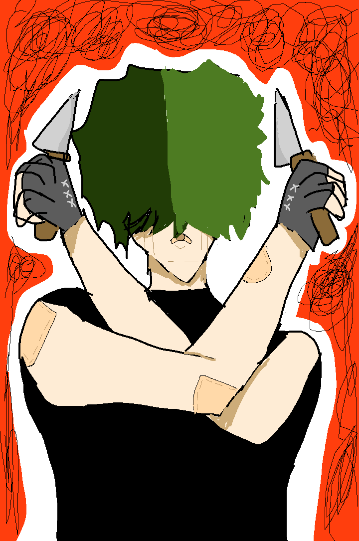 A guy holding tow knifes ( flash warning kinda)
