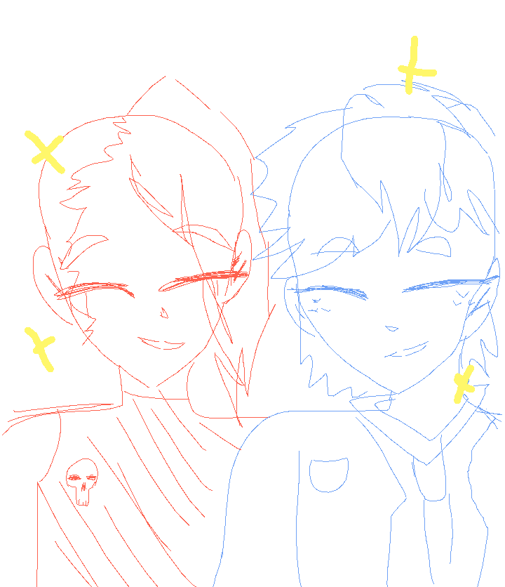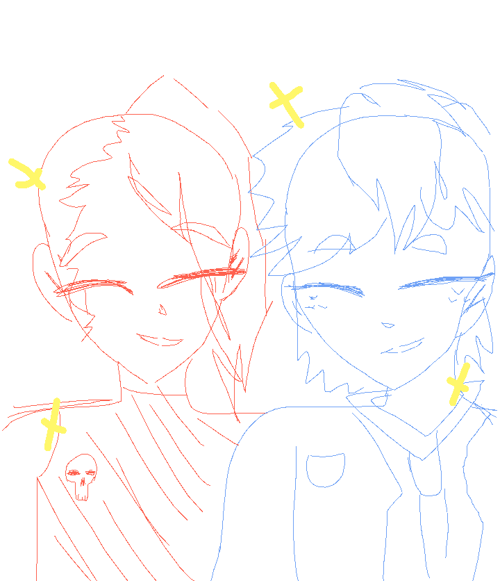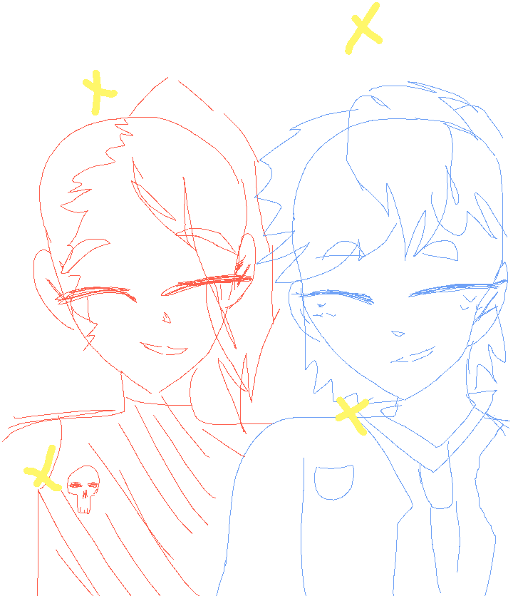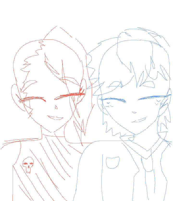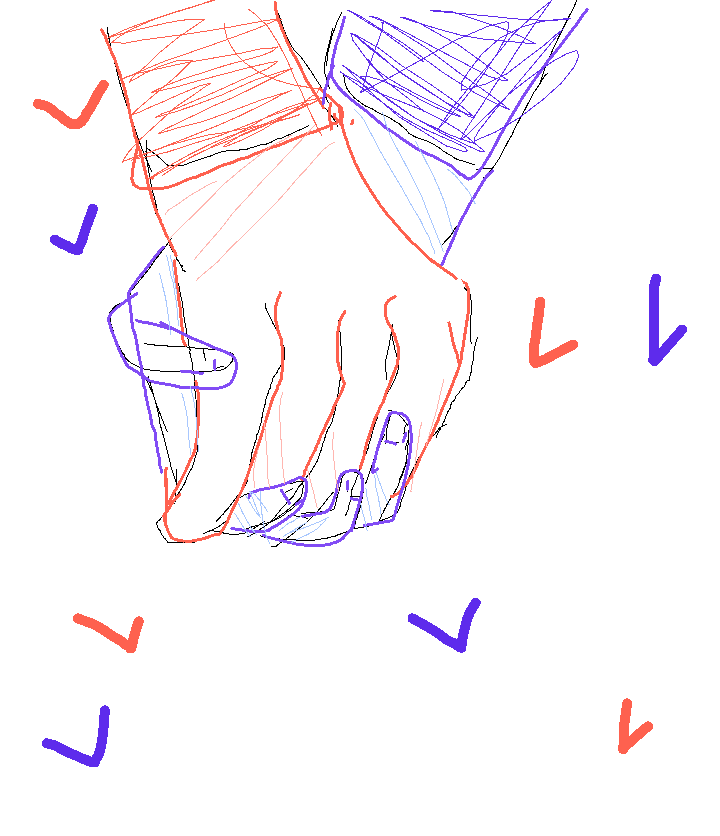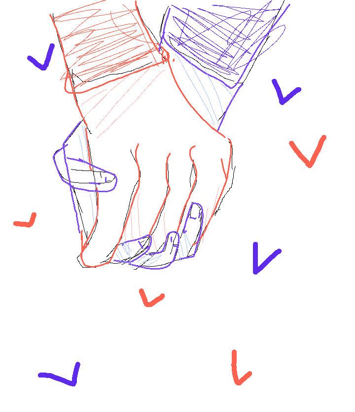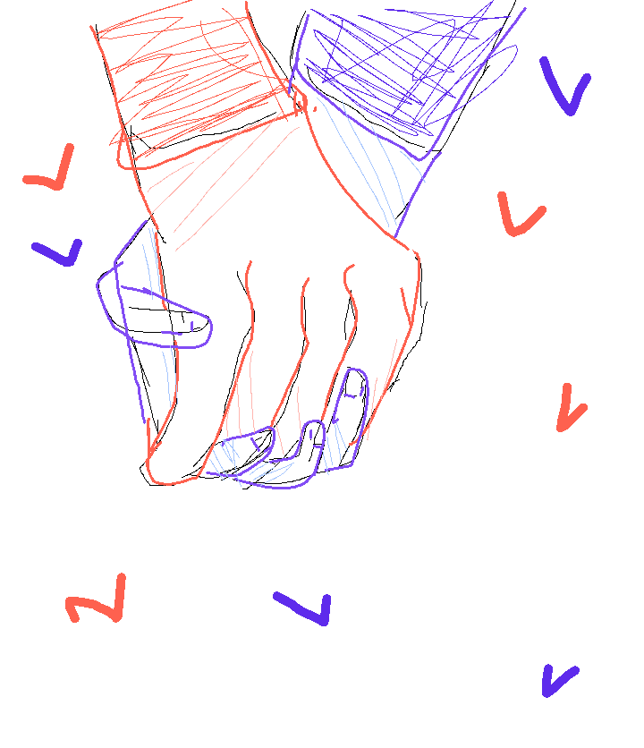 Tow people holding hands blue and red sketch