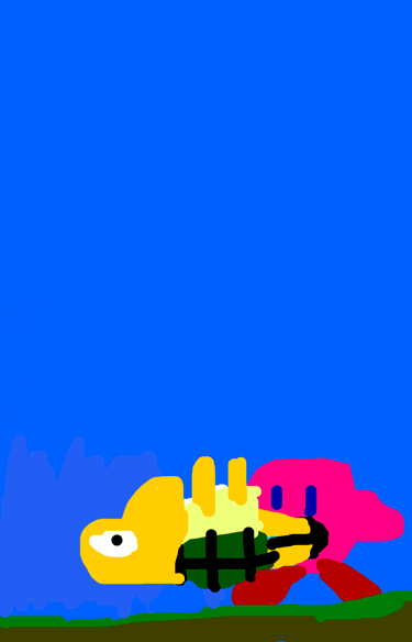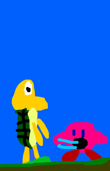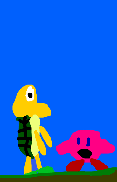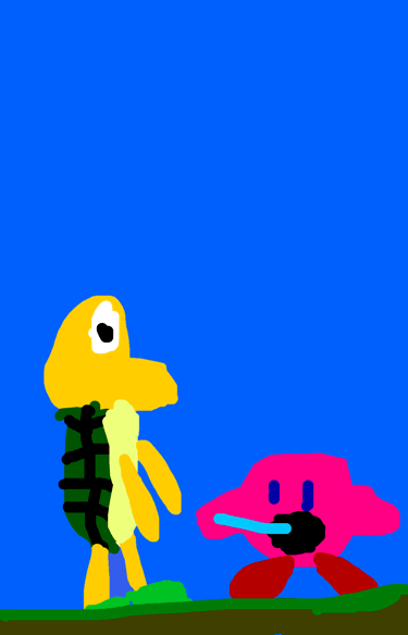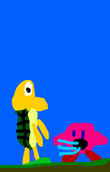 Kirby eats Koopa and Kirby goes “Bah-bah!”