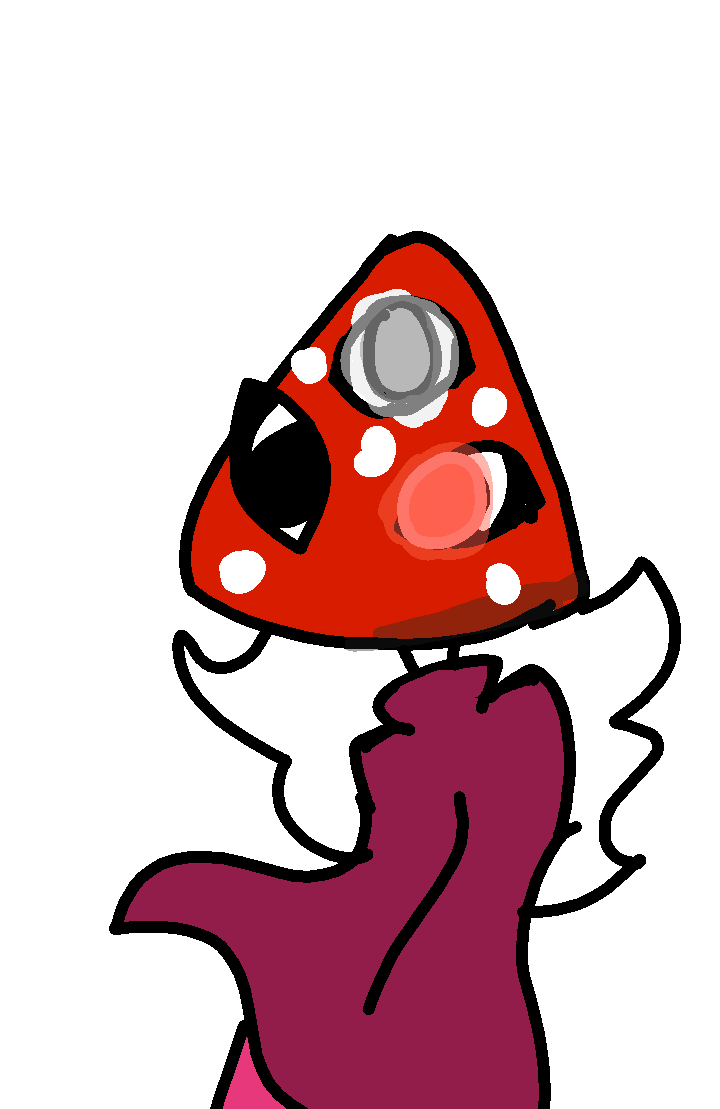 Anita's skin is naturally white because the Amanita mushroom's stem is white. Anita's hair is also white. She has 3 different eye colors. Black white and red. The white eye is 50% blind. (I made the hair and skin color white because of the mushroom stem) her ears are pointy because of the shape of her mushroom. (Her ears are red a bit too XD)