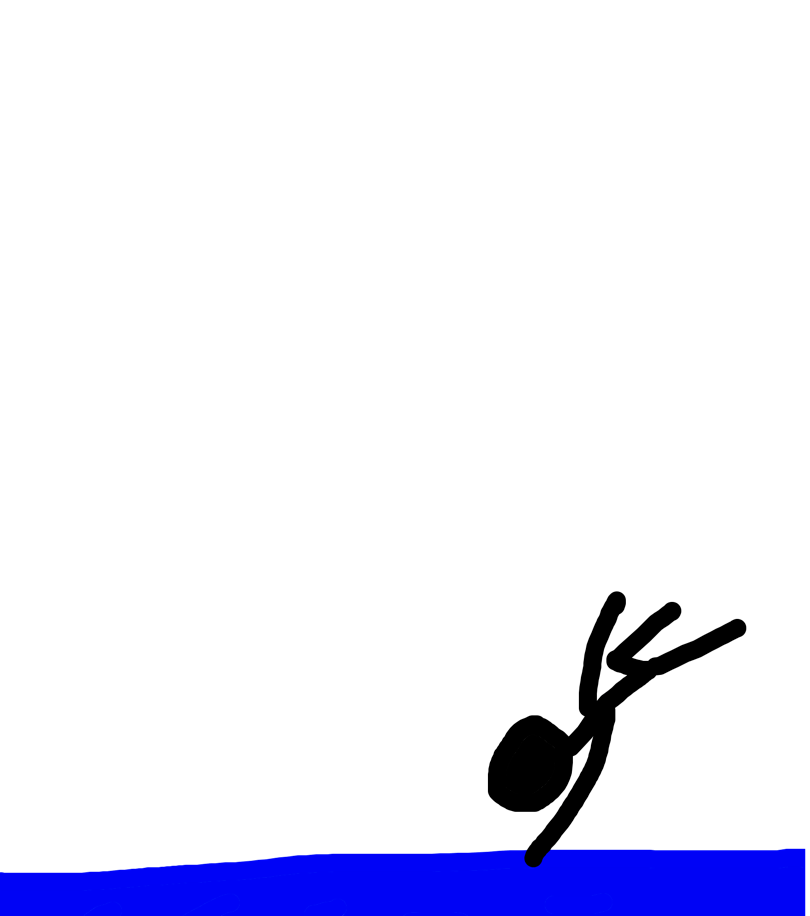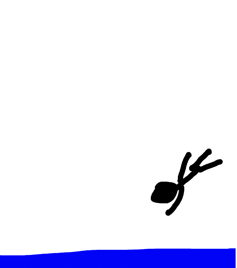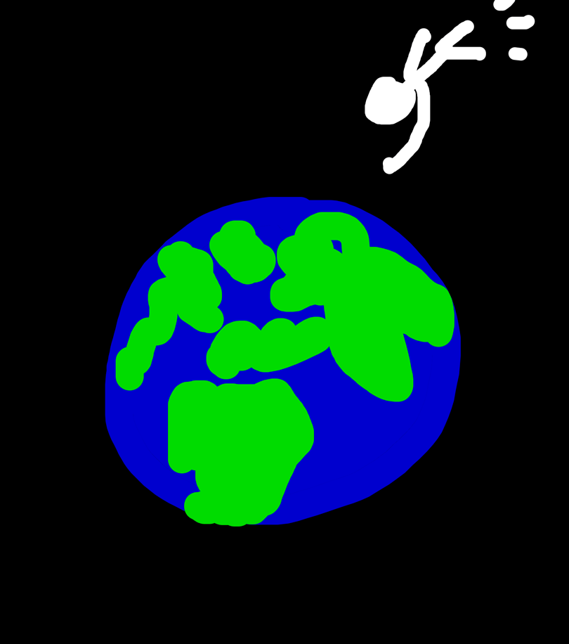 Stickman flys to space then goes back to earth and crashes in a ocean