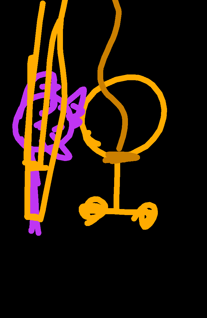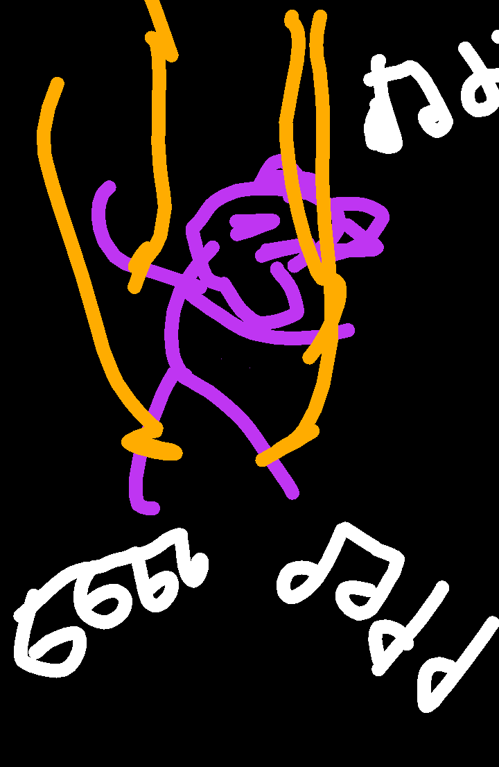 Purple is forced to move around by rope to entertain