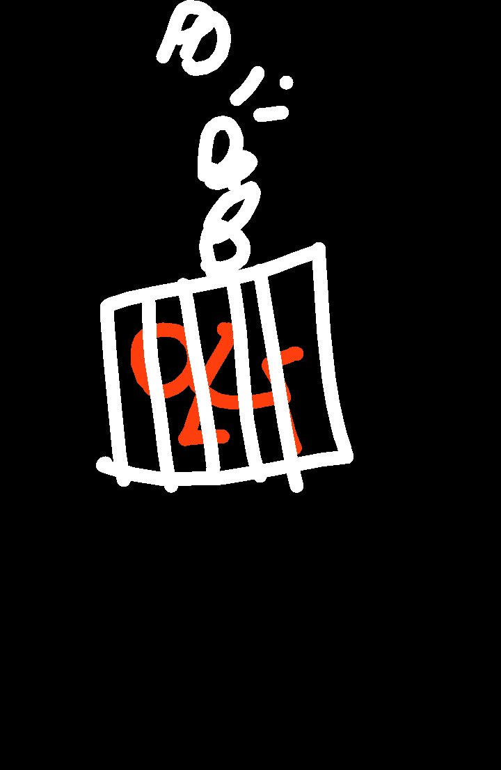 the person falls inside the cage.