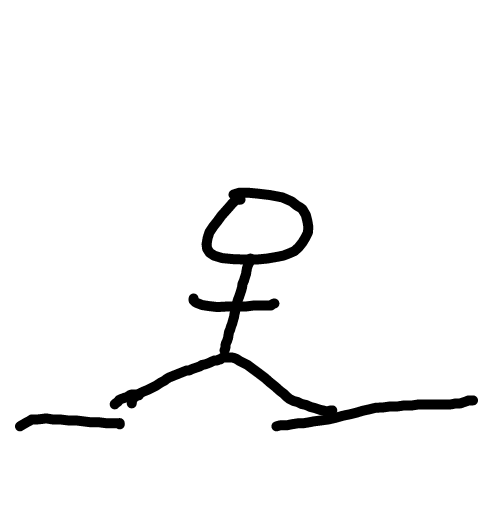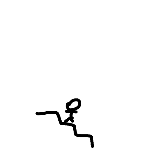 He stands floor breaks falls walks up the stairs to the same spot then repeats