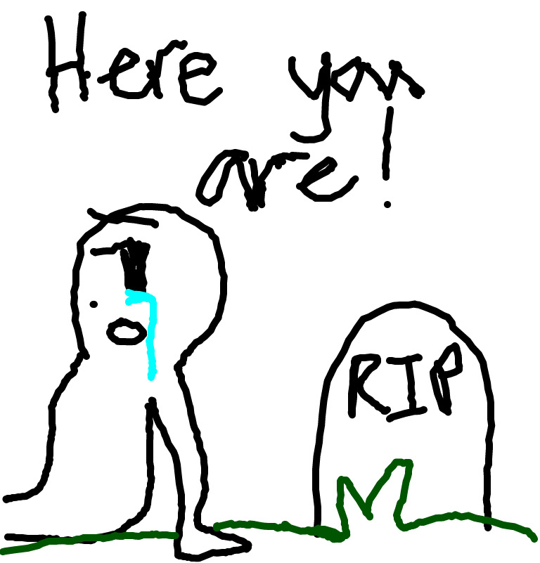 The girl who he loved so much, died in a car accident. He said, " You...Said you..will never..leave me!", Then as he look to her grave he said, "Here you are...Dead!". And then his last tear came, falling down...