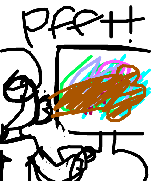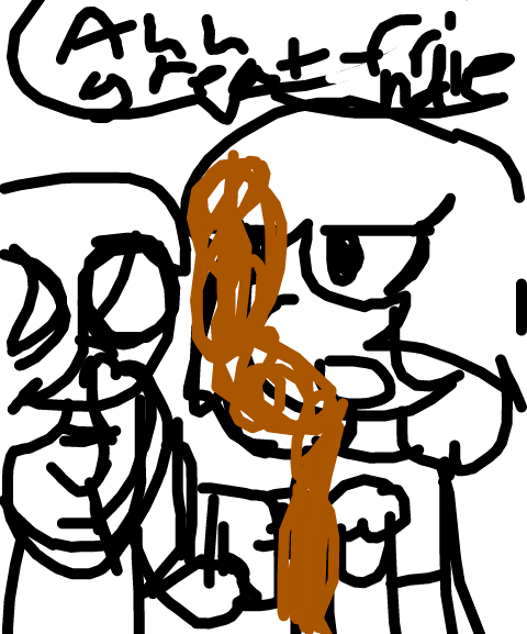 So the guy is my friend and the girl is me. So let's call my friend Luke so look is watching TV and he saw something on TV surprisingly and that causes him spitting coffee on me. After that I say "ahh great friend" and my parents were watching my mom said