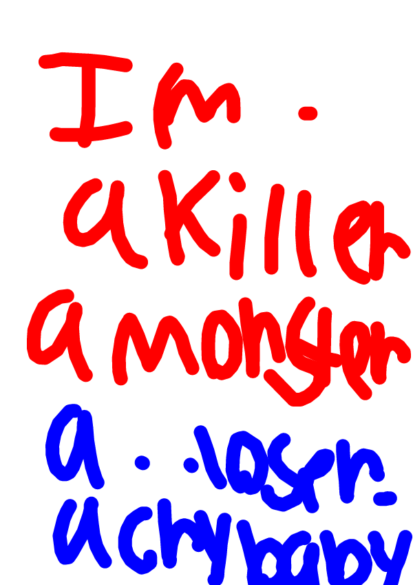 kill me...you know you want to...I'm going rouge....I'm a cry baby....I killed my friends....my sister...my family....and....lily....i alnost killed her...