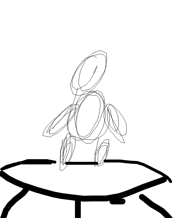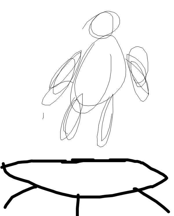 Has a angle jumps up on a trampolen and falls to the side on to the living world.